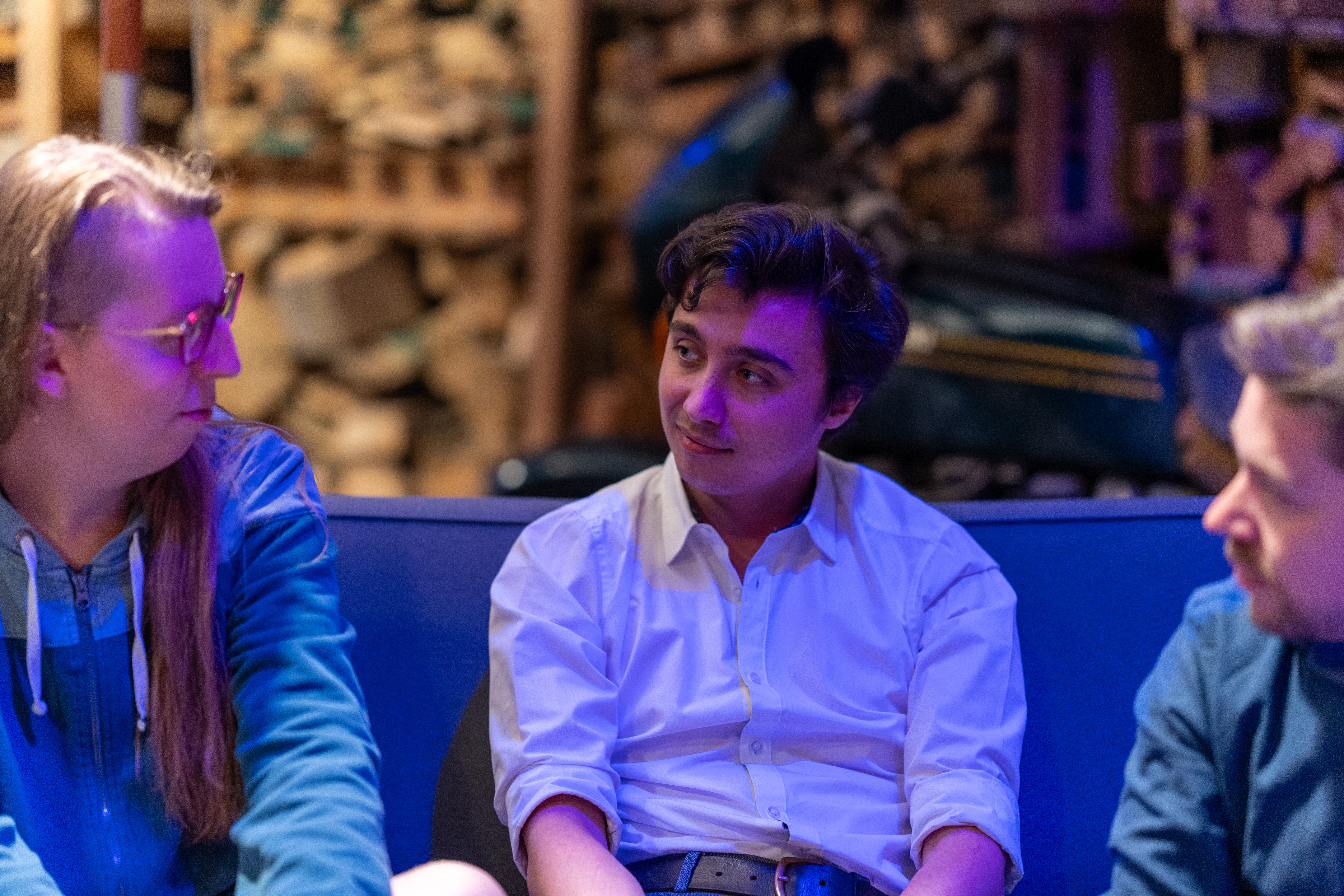 Indy: Thanks! Mijn naam is dus Indy en ik ben 23 jaar oud. Ik woon hier niet zo ver vandaan, in Kontich. Een beetje nerdy, maar ik ben altijd al gefascineerd geweest door computers, informatie en technologie. Via mijn opleiding aan de KDG ben ik uiteindelijk hands-on aan de slag gegaan met software en het effectief màken van die software. Dit was een fijne uitdaging en ook gewoon een leuke verruiming. En nu zit ik hier, rechtstreeks van de schoolbank!